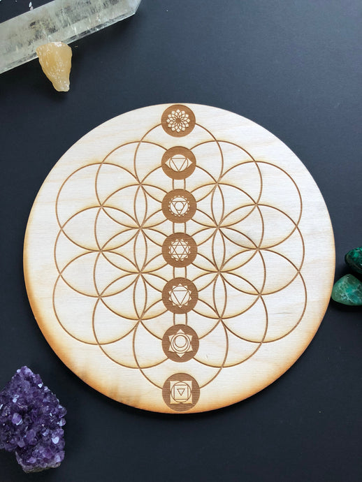 Beautifully designed Crystal Grids made out of Birchwood - These Crystal Grids use sacred geometry and Ancient symbols for you to create your own powerful Grid, intricately designed, each grid is unique, you are only limited by your imagination.